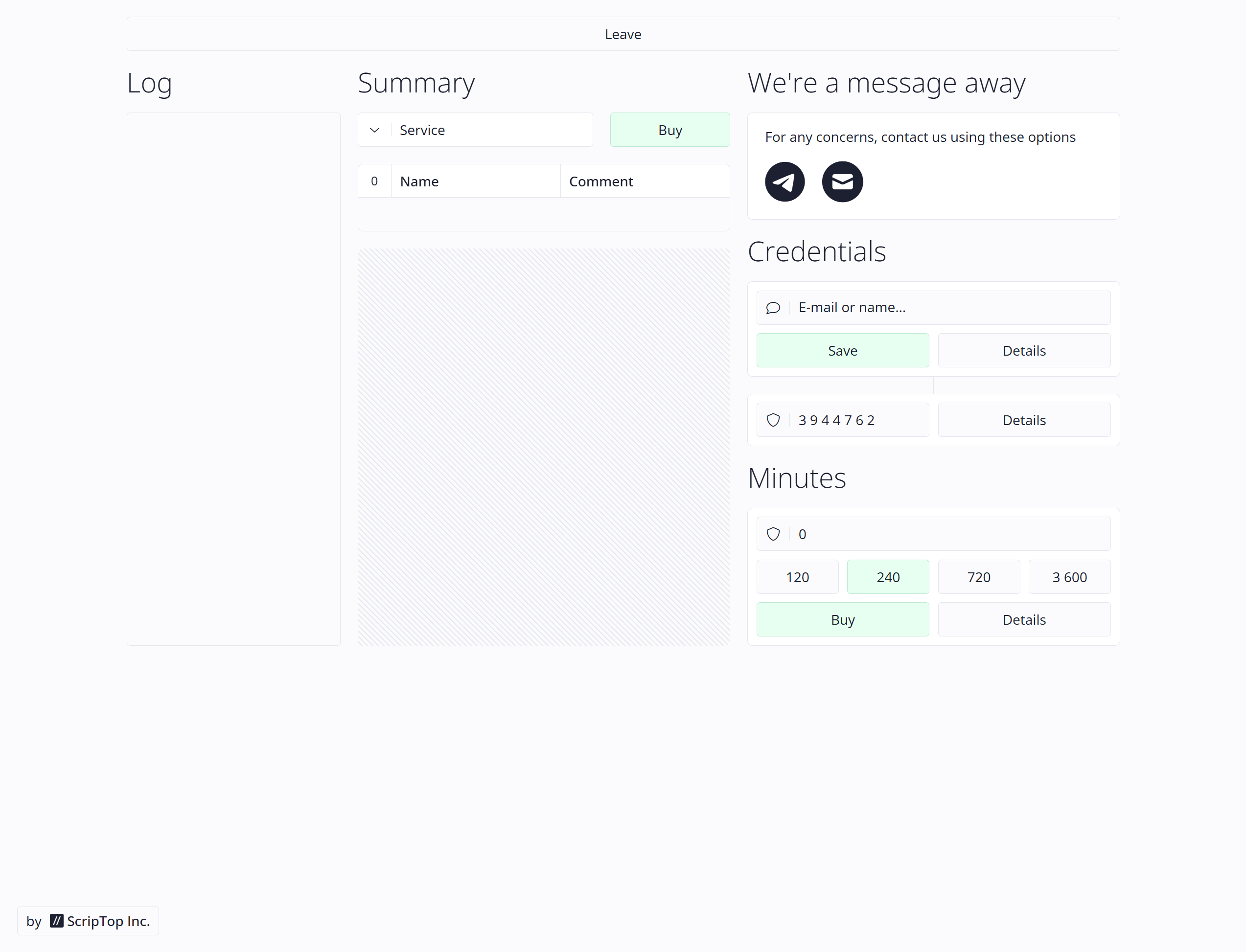 We talk about the minutes of our work. Bonus minutes are automatically added to the balance each month. Users can purchase more minutes on demand for a base price of 0.50 USD per minute.